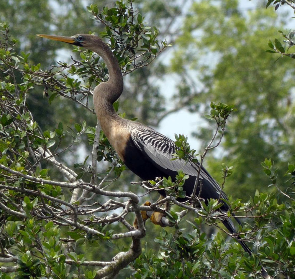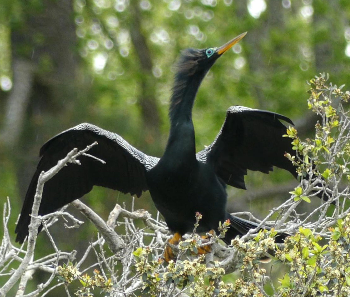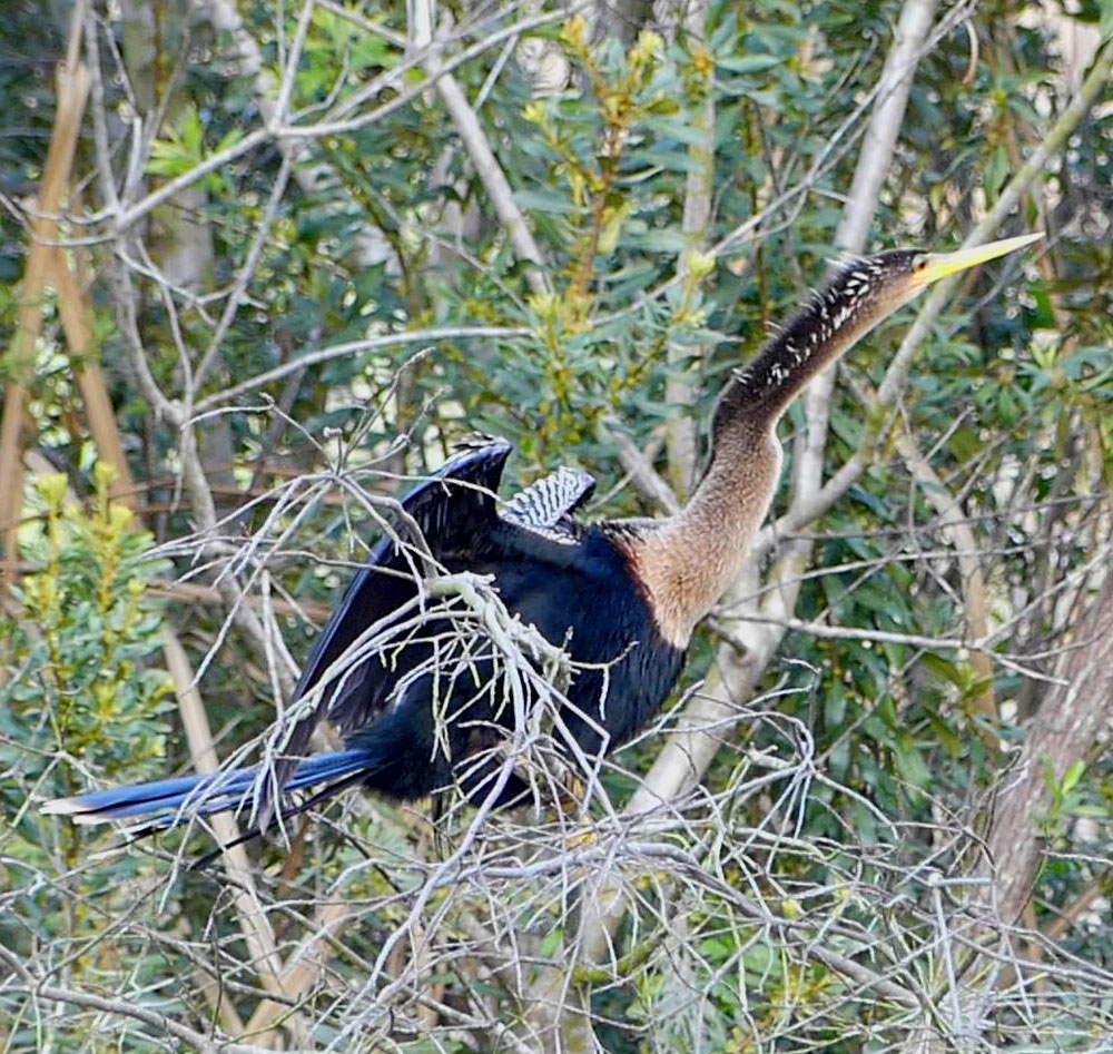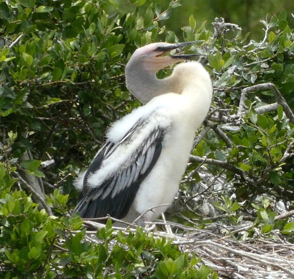 Anhingas are the third most common bird that breeds at the rookery. Typically, less than a half-dozen Anhinga pairs breed on the island.