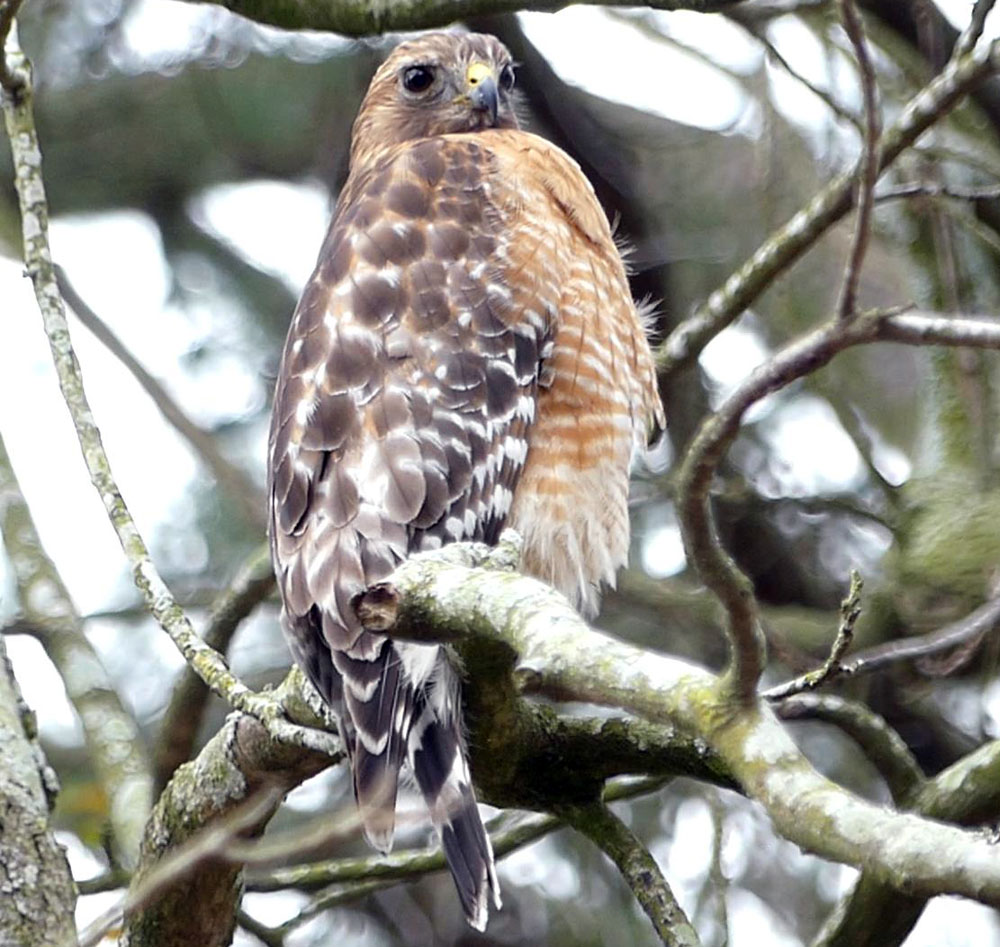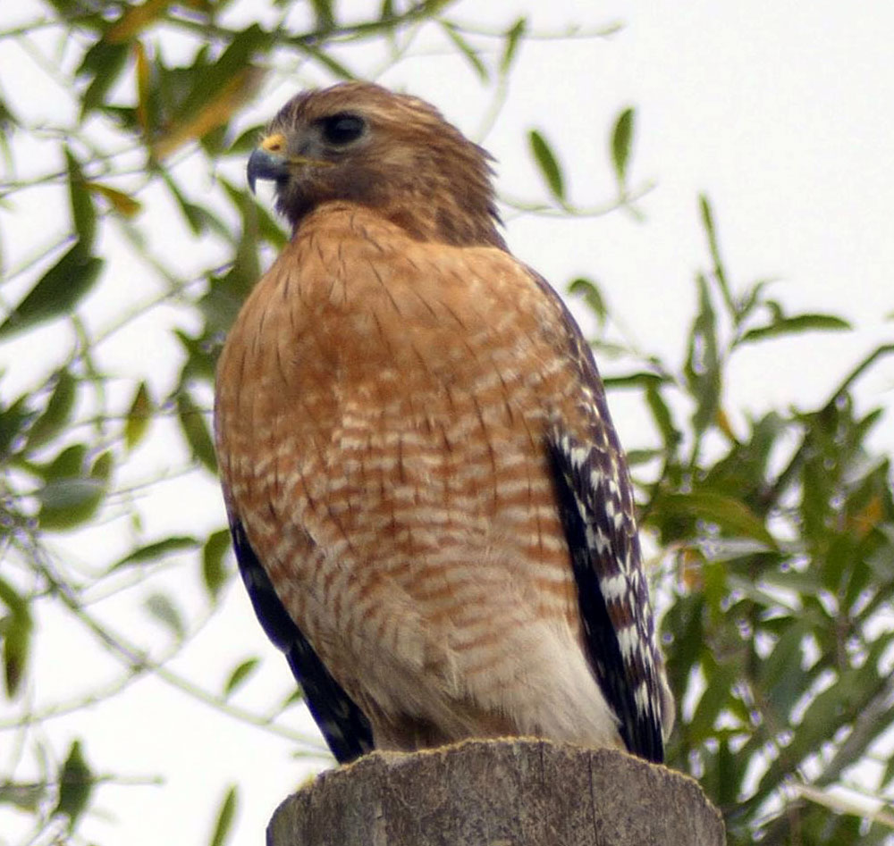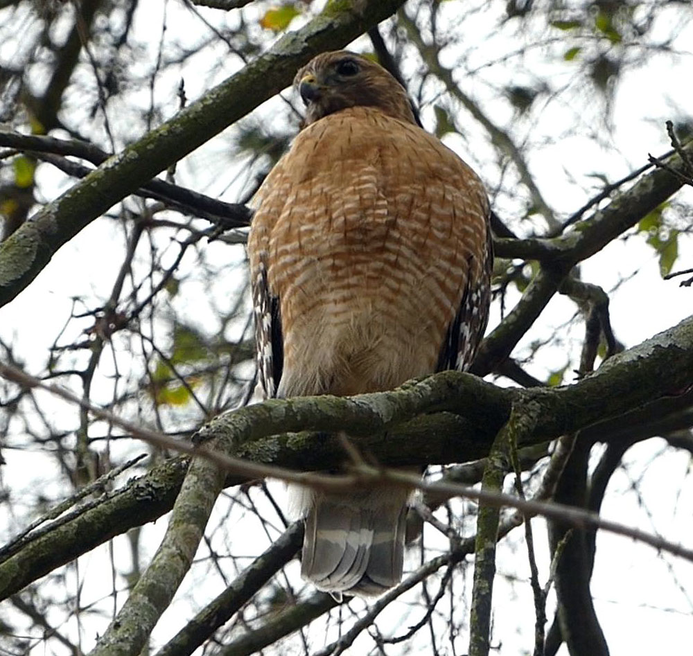 When red-shouldered hawks fly over the rookery, they upset most of the other birds. They are one of three raptors seen from the rookery, along with Ospreys and Bald Eagles.